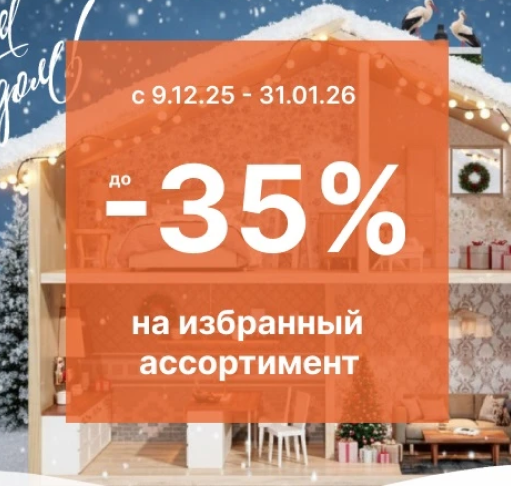 Специально для тех, кто ценит комфорт и стиль, мы запускаем акцию «Время дарить уют». Это возможность обновить свой дом с выгодой до 35% на всё, что создаёт атмосферу тепла и праздника: